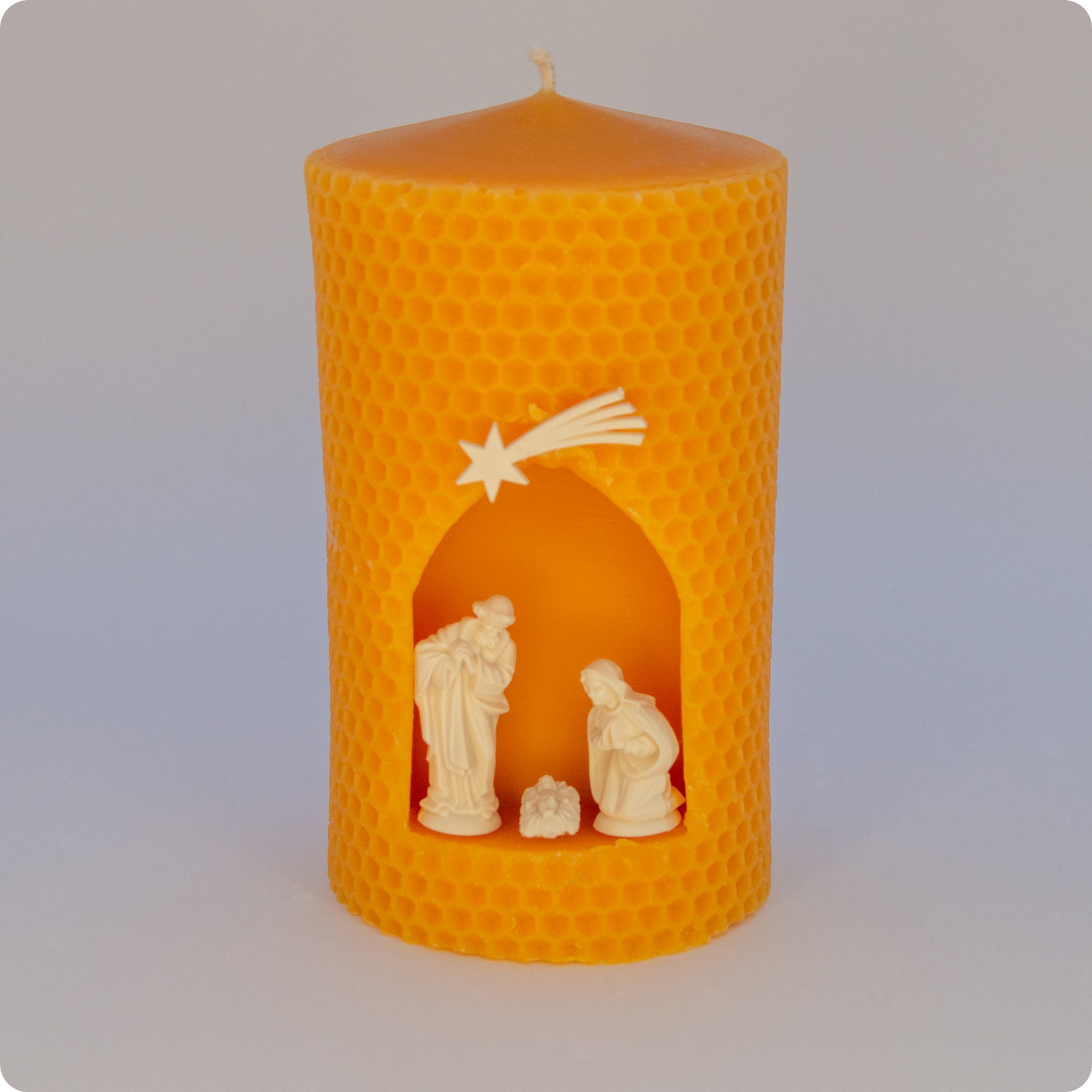 Stumpenkerze mit Holzkrippe: