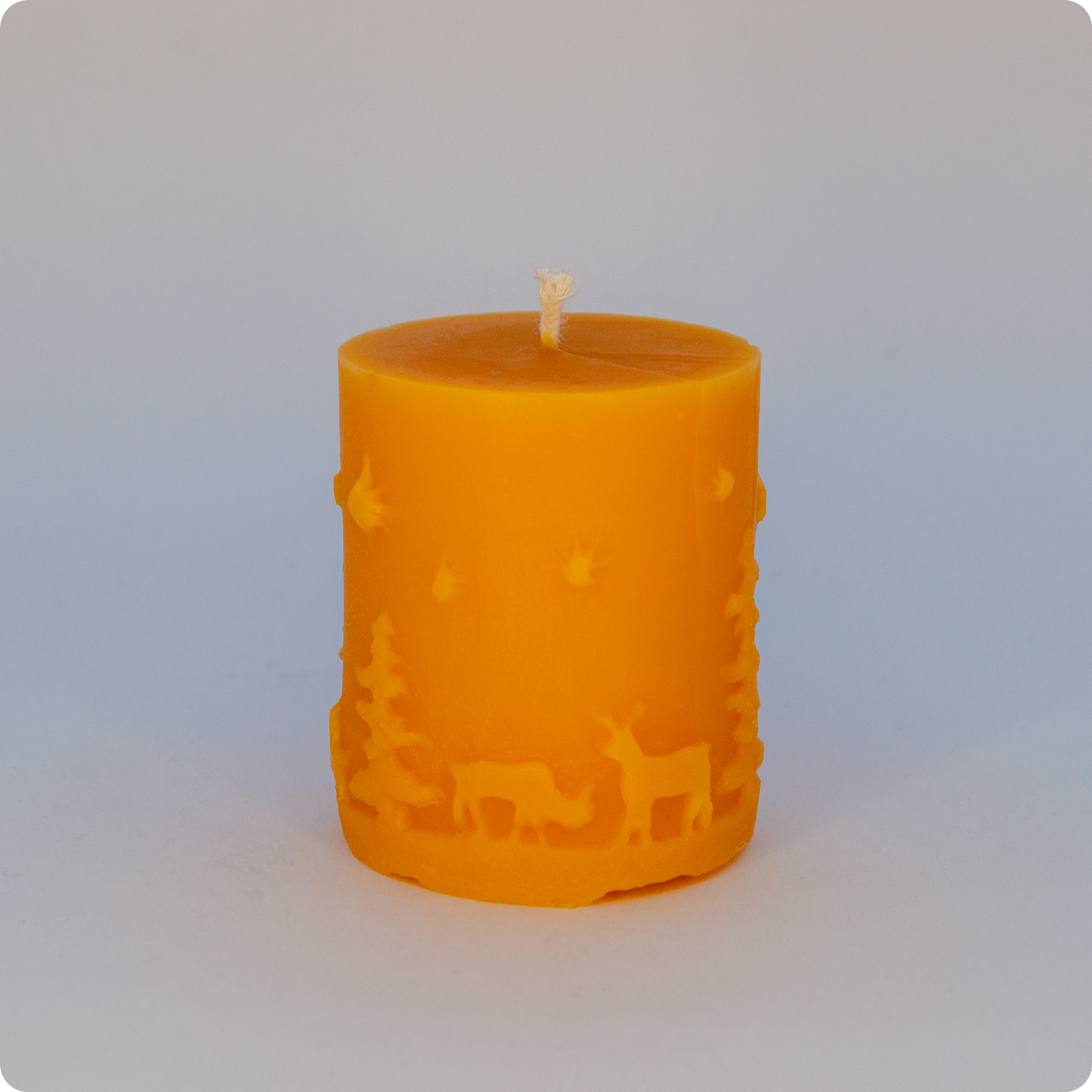 Stumpenkerze mit verschiedenen Motiven und Formen.